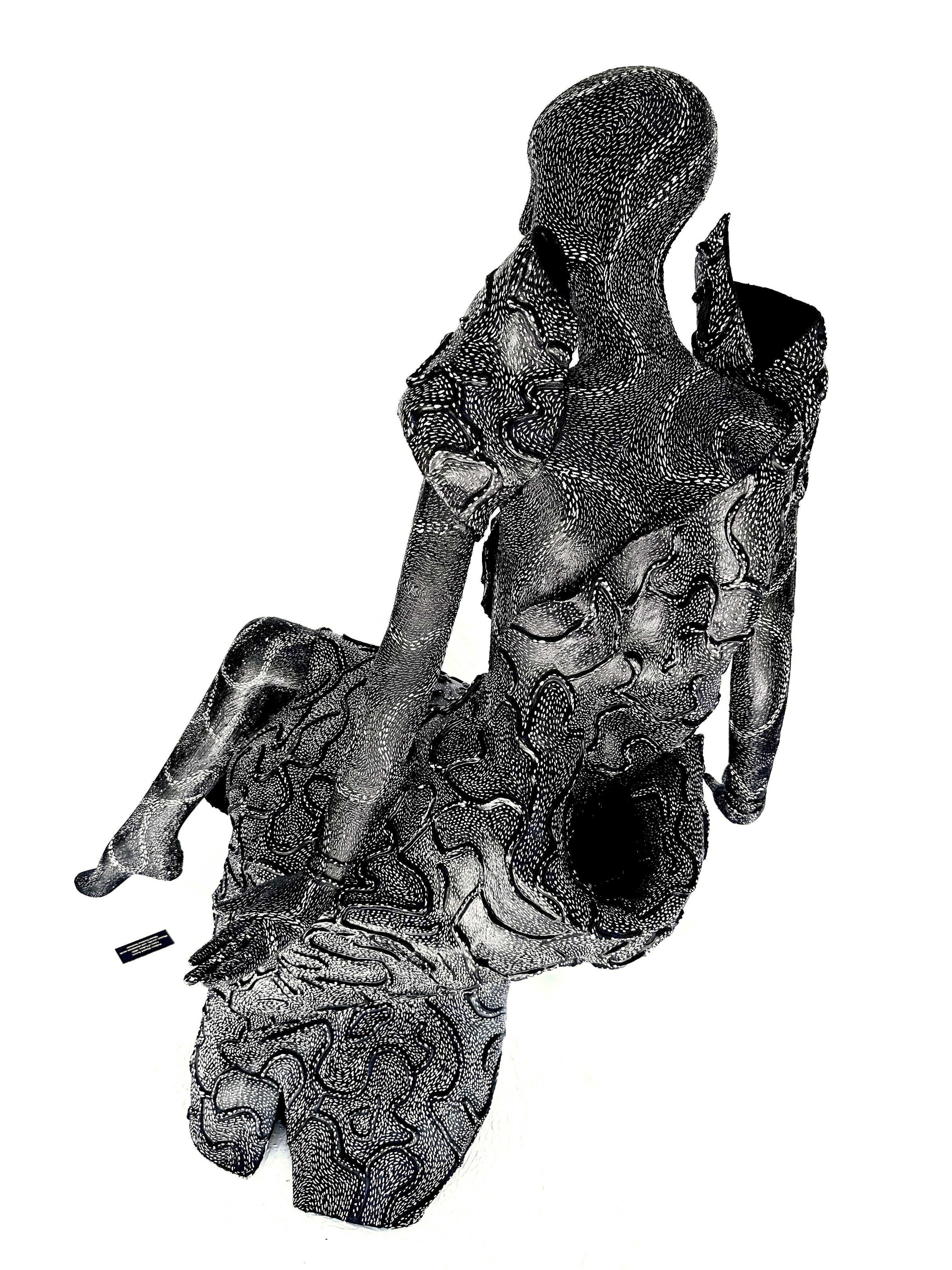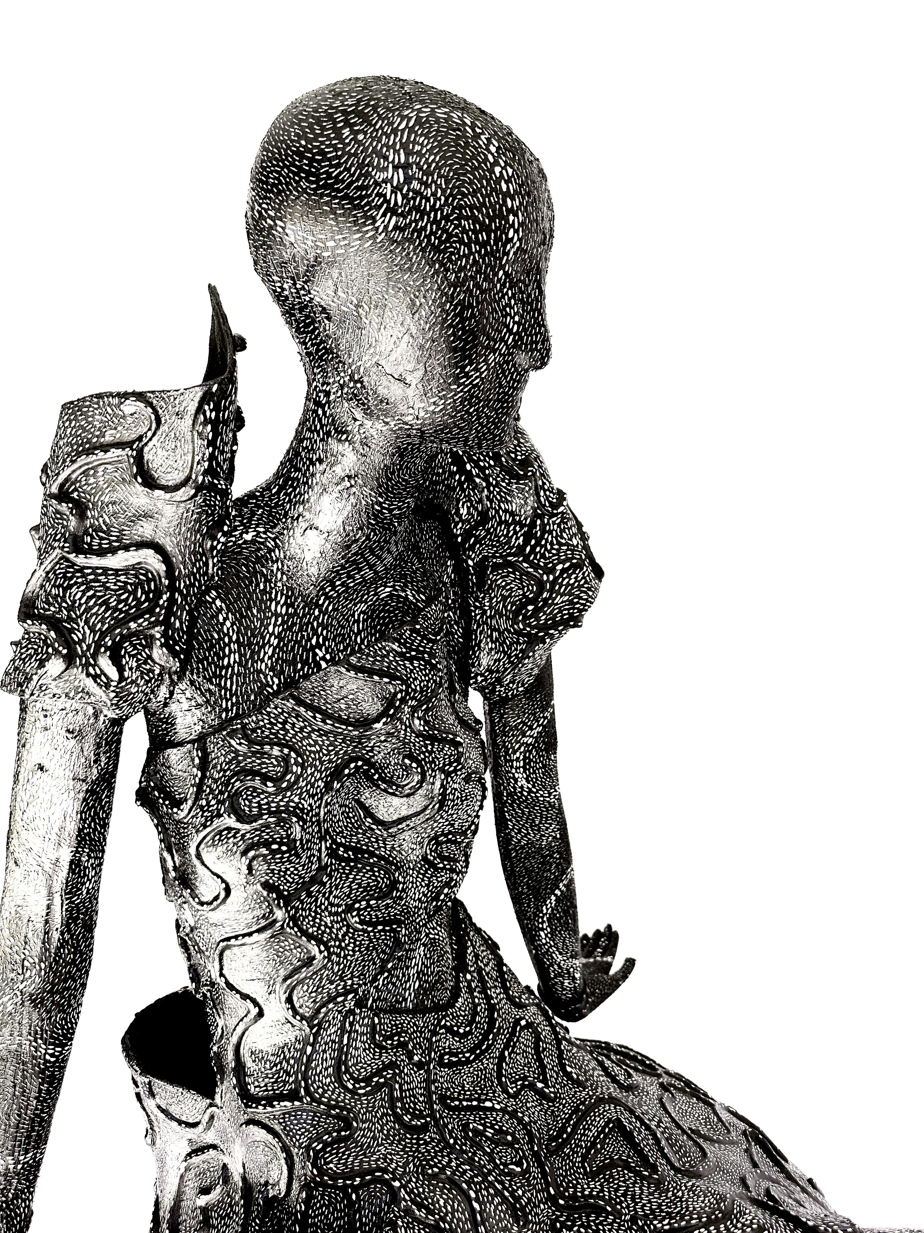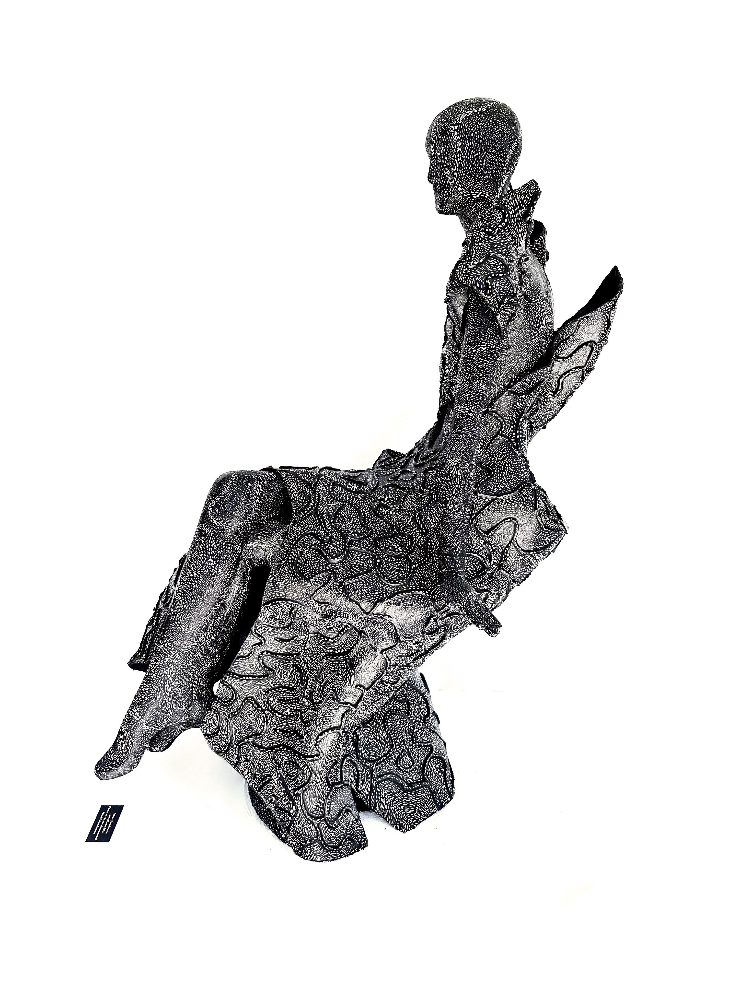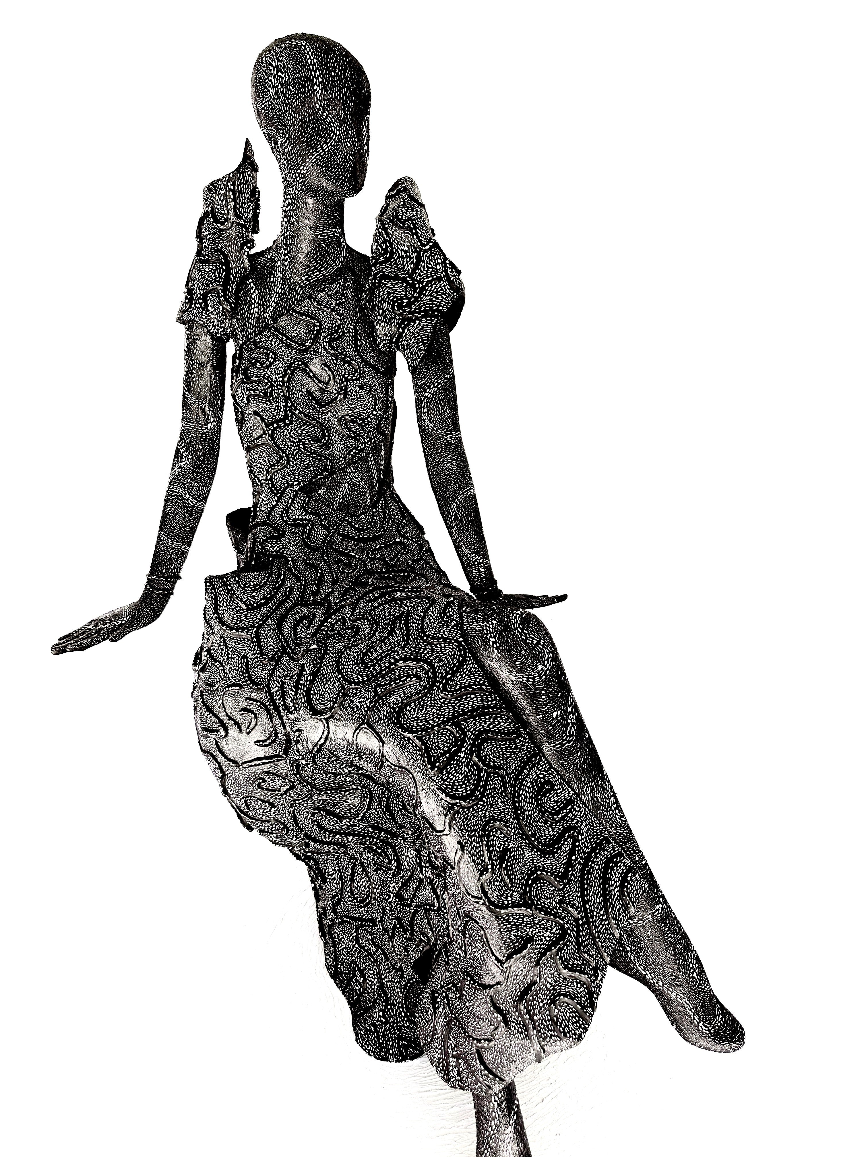 lasting form. The figure, seated gracefully upon her own dress, embodies the