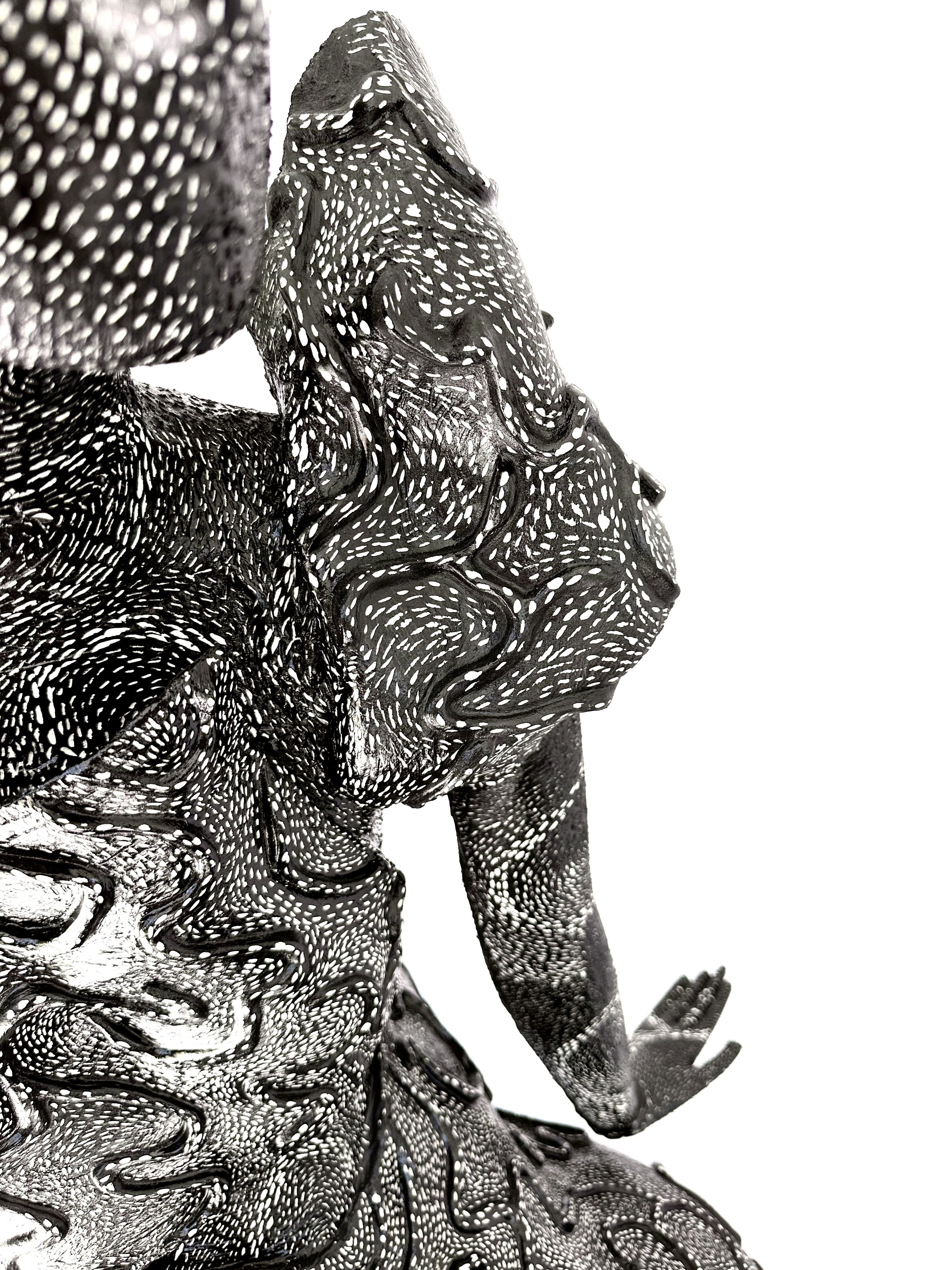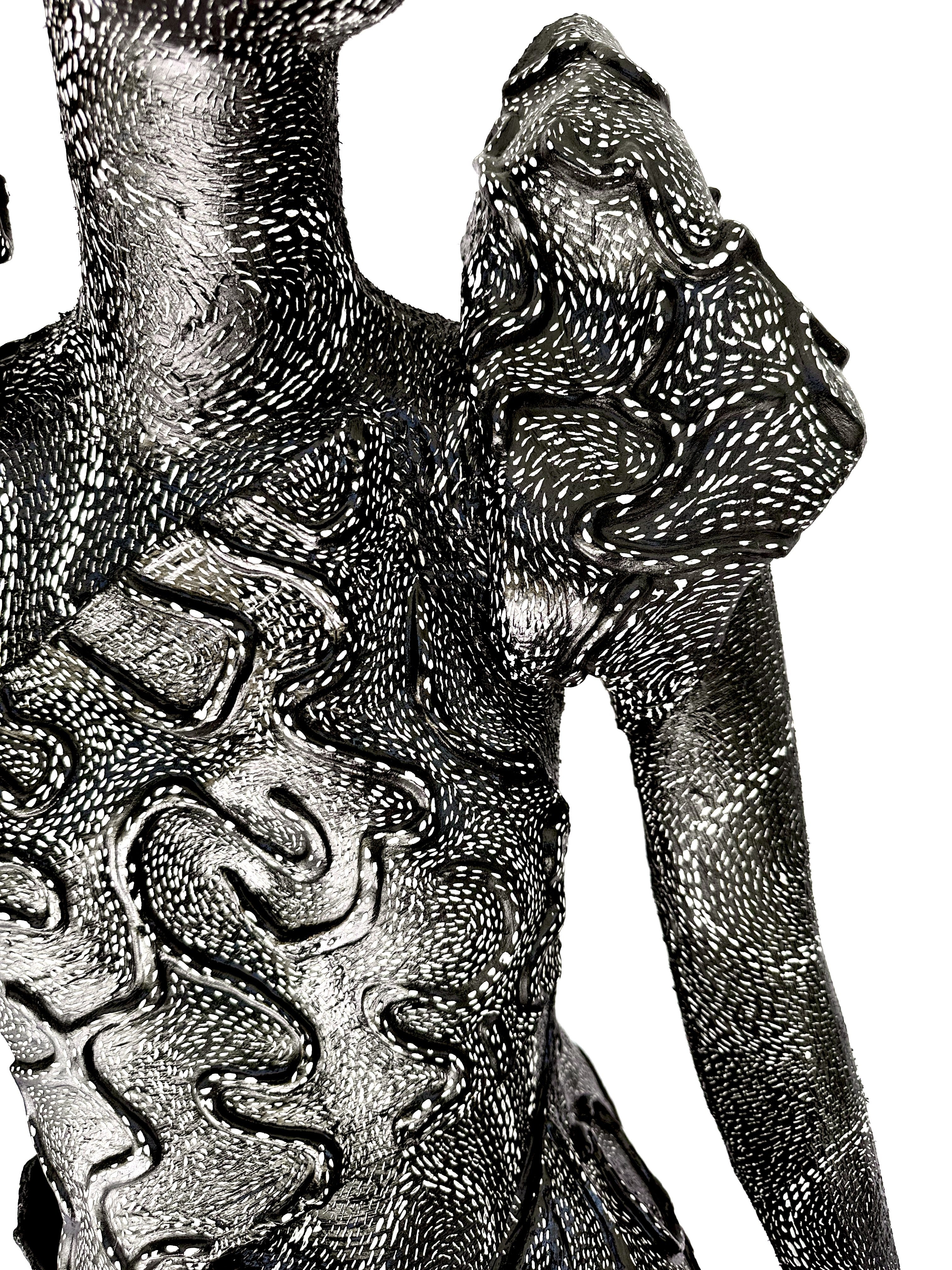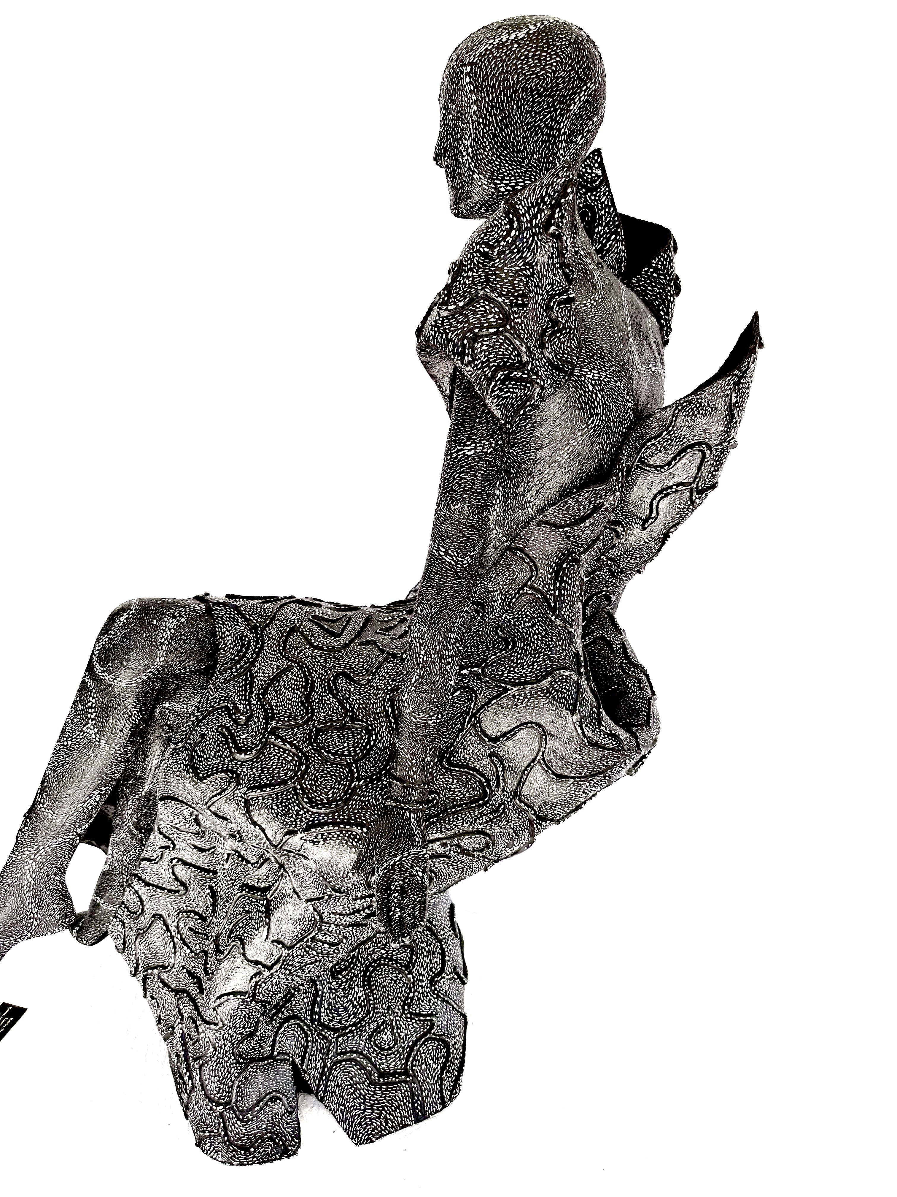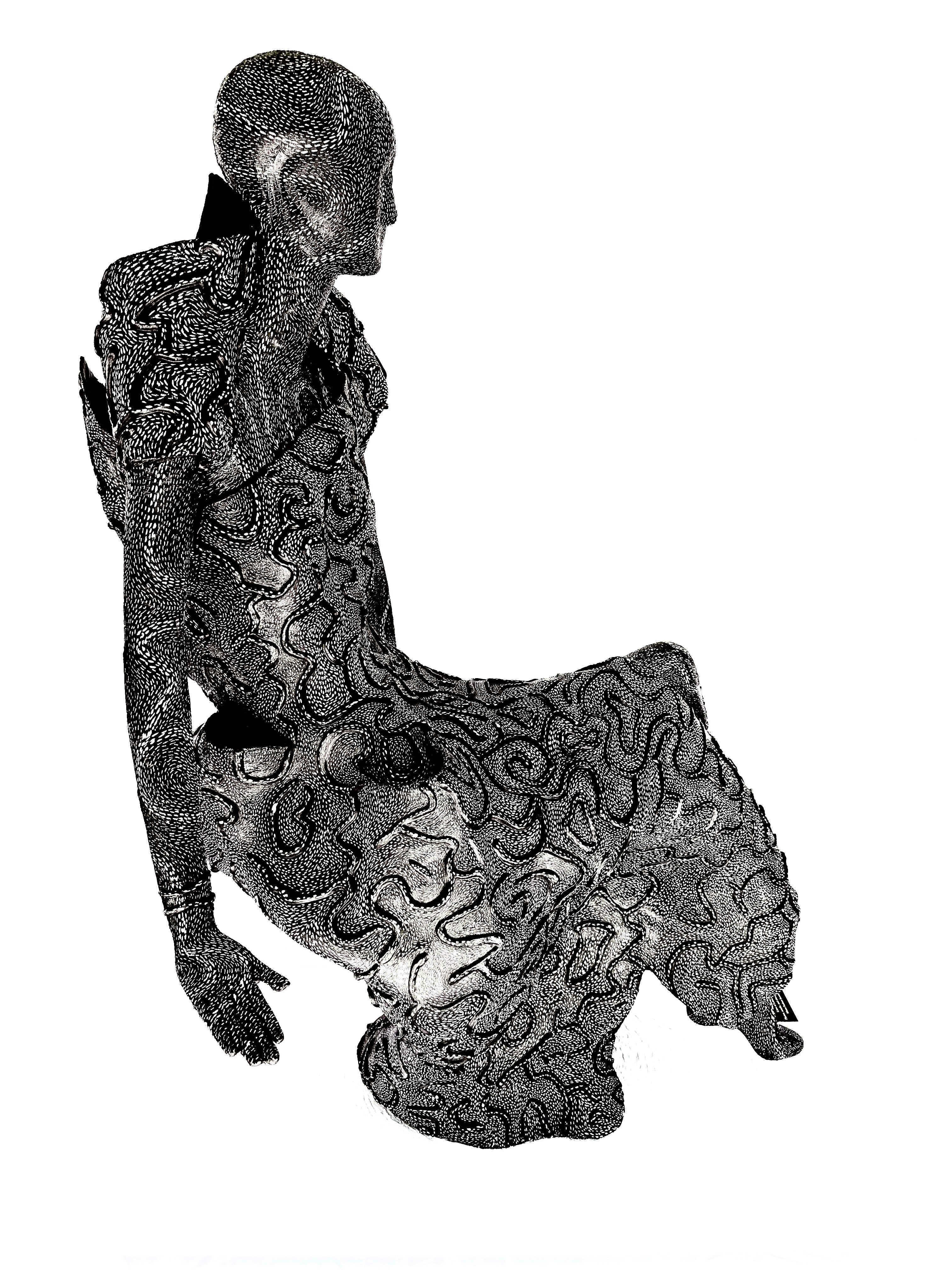 lasting form. The figure, seated gracefully upon her own dress, embodies the