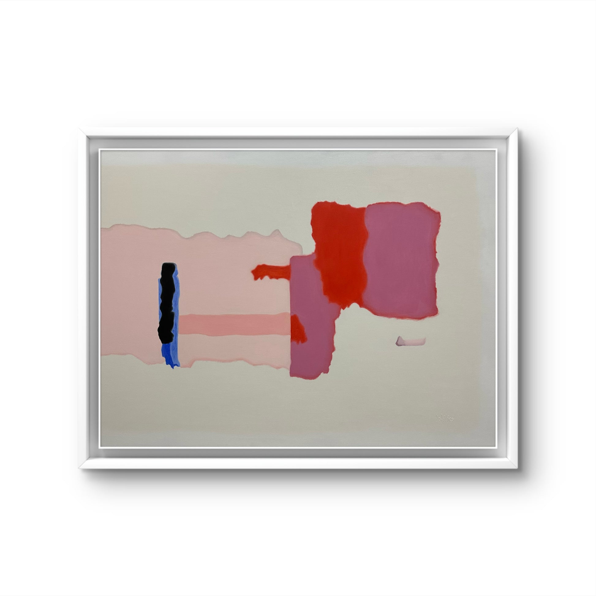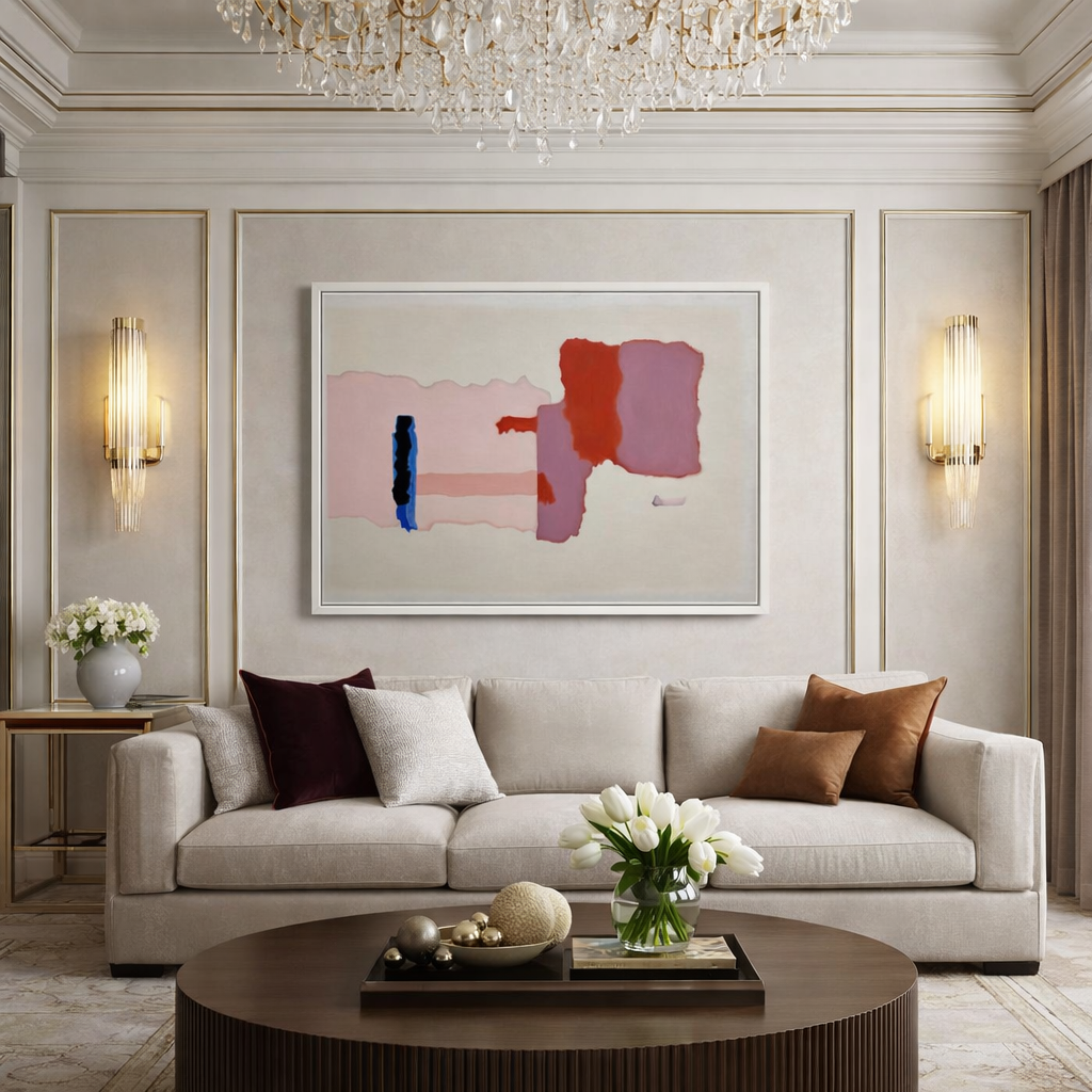 Floating Structures explores the quiet movement of emotion beneath stillness. Soft blush tones drift across the surface while deeper forms interrupt the calm, creating a subtle tension between flow and resistance. The composition invites the viewer to slow down and feel the undercurrent of thought, memory, and presence that exists even in moments of apparent quiet.