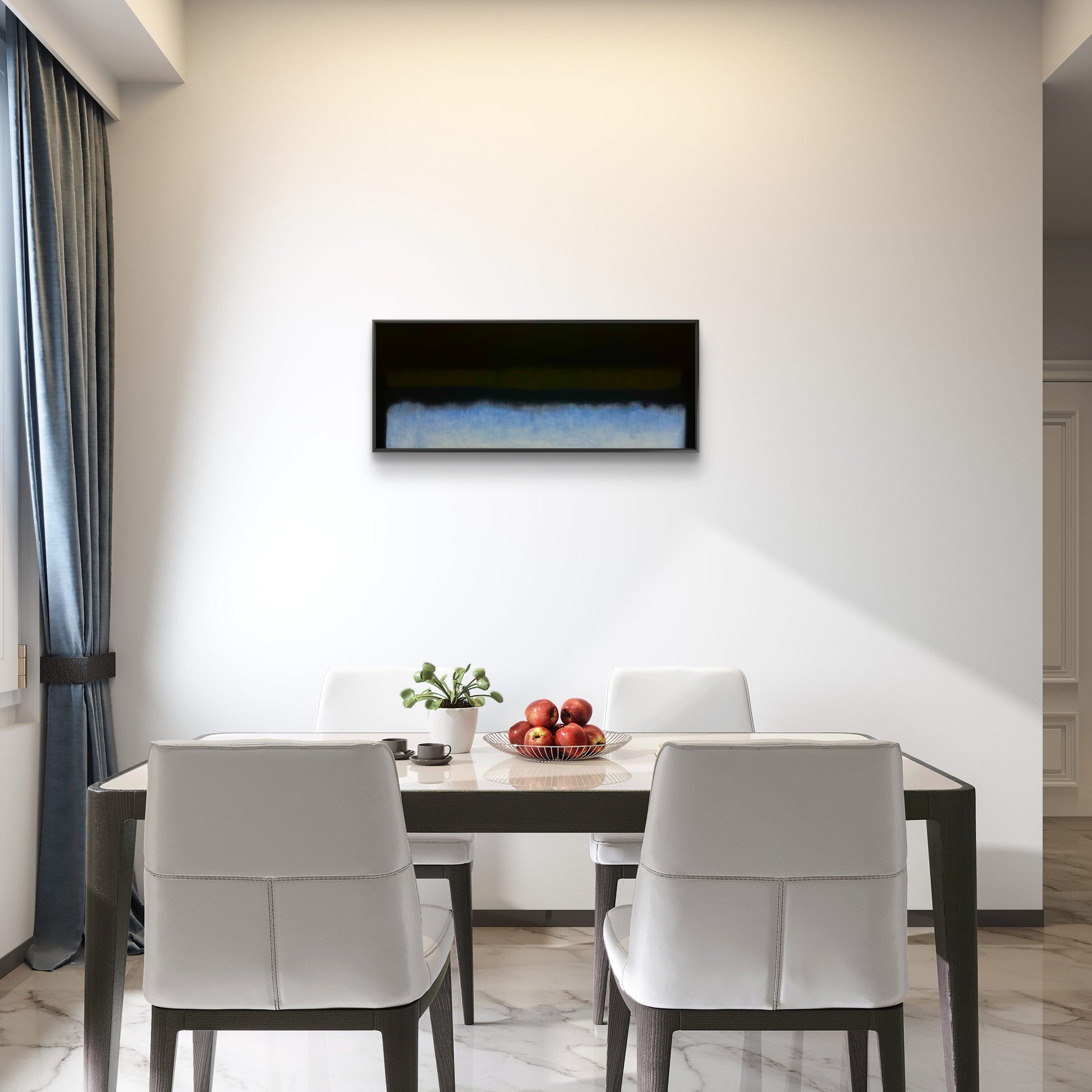 Through subtle transitions and textured surfaces, the painting invites the viewer to pause and experience a meditative landscape that exists somewhere between abstraction and memory. The piece captures the emotional stillness found in nature’s horizons while maintaining a powerful contemporary presence.